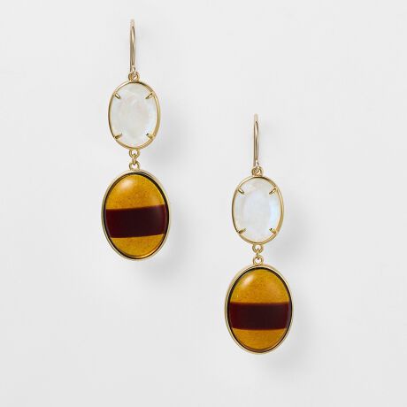 シンプルな石留めが、リファインドアンバーの素材美を引き立てる、ボリューム感のあるフックピアス。アンバーならではの縞模様が、スタイリングにさりげないアクセントを添え、耳元に温もりと個性をもたらします。存在感がありながらも、ナチュラルな色調が肌に馴染み、日常使いにもおすすめのアイテムです。※天然石や天然素材を使用しているものは、サイズ・色味・風合いの違いや、若干の傷、内包物の有無などに個体差があります。予めご了承ください。※アンバーはのり留めですので水分にはご注意下さい。