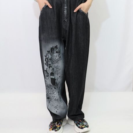 ScoLar スカラー スカラーPOP柄 スプレープリントデニムパンツ