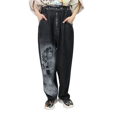 ScoLar スカラー スカラーPOP柄 スプレープリントデニムパンツ