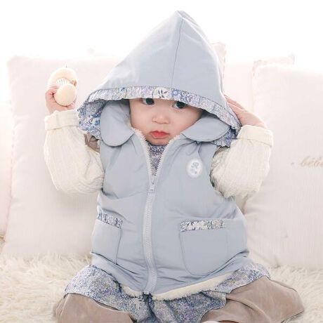 丸みのあるシルエットと、フードやポケットのディテールが、赤ちゃんの可愛らしさを引き立てます。