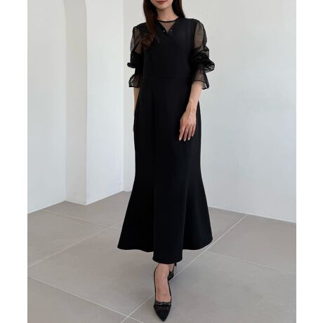 CENEA チュールシアーブラウス+VネックマーメイドワンピースSET