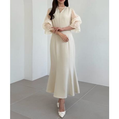 CENEA チュールシアーブラウス+VネックマーメイドワンピースSET