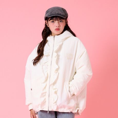 ファスナー部分のフリルデザインが魅力的なモンスターパーカコートです。