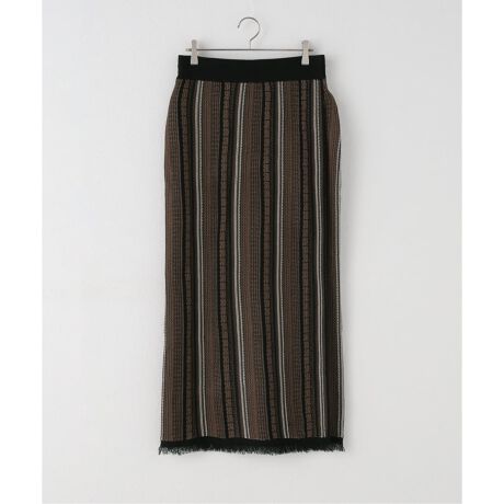 ジャガード柄が目を引くニット素材のラップスカート。