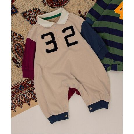 BREEZE(ブリーズ)のカバーオール・ロンパース「【リンク】ナンバリングポロシャツカバーオール」は、小さいお洋服にこだわりを詰め込んだ大人顔負けのデザインが人気!出産祝いのギフトにもおすすめです♪