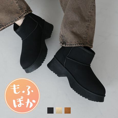 【25秋冬新作】もふぽか厚底5.0cmチャンキーヒールムートンブーツ