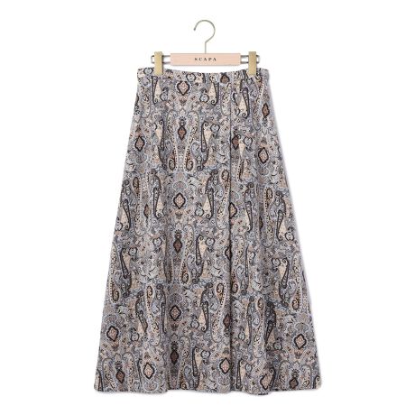 サラサプリント柄が着こなしのアクセントになる華やかなロング丈スカート。細かなディテールの柄が目を惹くデザイン。タック入りで自然なドレープのあるフレアなシルエット。すっきりと着こなせるサイドジップ仕様。お手持ちのトップスに合わせておしゃれなお出かけコーディネートが完成する便利なアイテムです。
