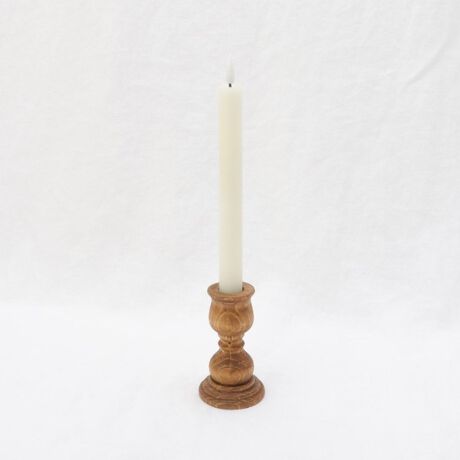 アンティークのような雰囲気のある木製のスタンドとLEDキャンドルライトのセット。