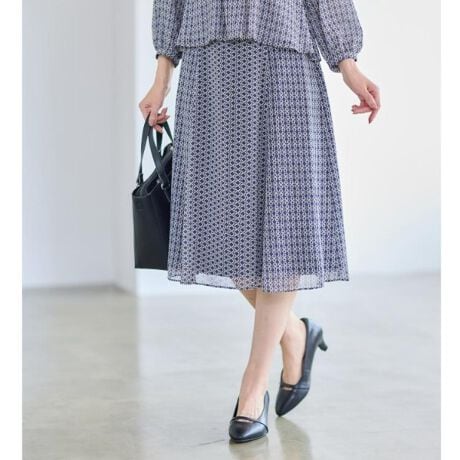 万華鏡のような楽しさのあるモチーフで、幾何柄の知的さも感じられるオフィスにもぴったりなプリントスカートです。