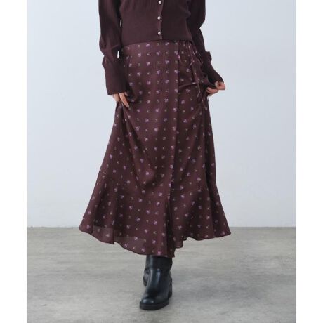 レトロなフラワー柄で魅せる、動きのあるラップスカート。