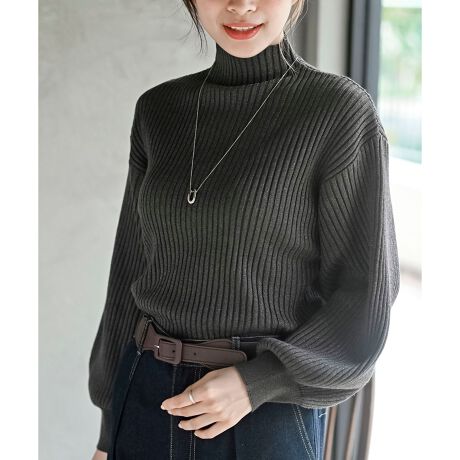 スタイリッシュな印象のボトルネックやふっくらとしたボリュームスリーブがこなれ感を演出。