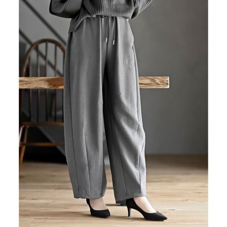 ゆったりとしたシルエットに膝あたりから緩やかなカーブをあしらったワイドパンツ。