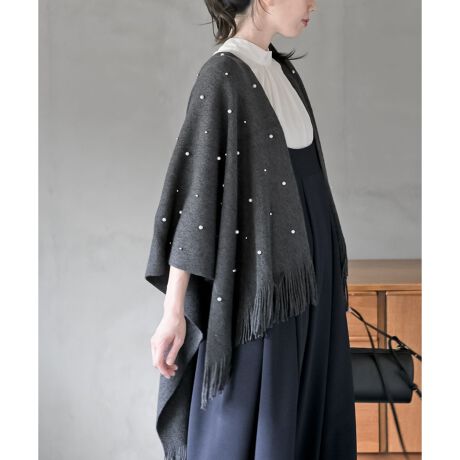 肩から羽織るだけでコーデがワンランクアップするポンチョタイプのストール。
