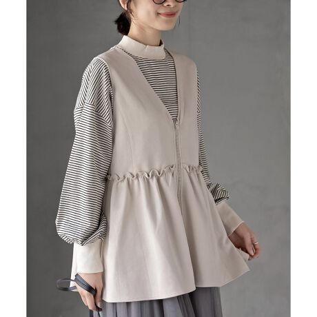 切り替え部分のフリルがアクセントになったおしゃれ見えベスト。
