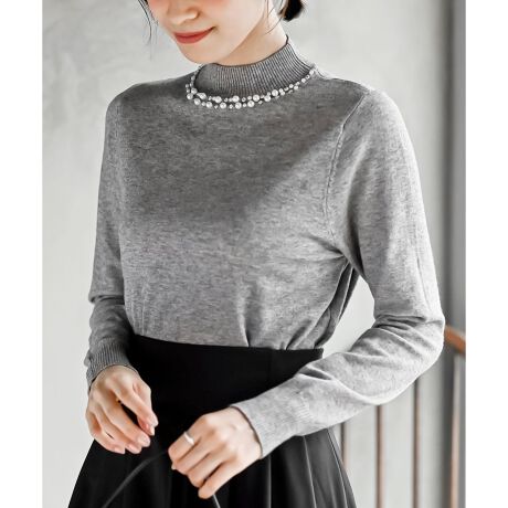 【洗える】パールとビジュをちりばめた贅沢ニット
