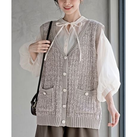 重ねるだけできちんと見えが叶うツイードライクなニットベスト。