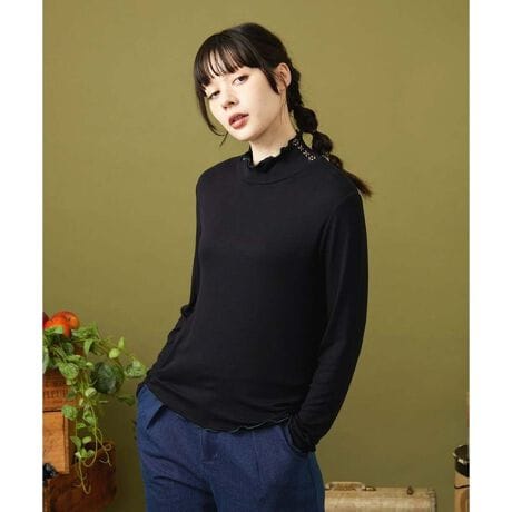 合わせるアイテムを選ばない秋冬の定番インナーカットソー。フィット感のあるすっきりシルエットです。首元の両サイドには刺繍とプリントでお花モチーフをあしらい、重ね着してもちらりと覗くアクセントに。裾のメロウデザインにも注目です。差し色としても取り入れたいカットソーは色違いで揃えたいマストハブアイテム。ハイネック仕立てでオンオフ活躍する万能アイテムです。