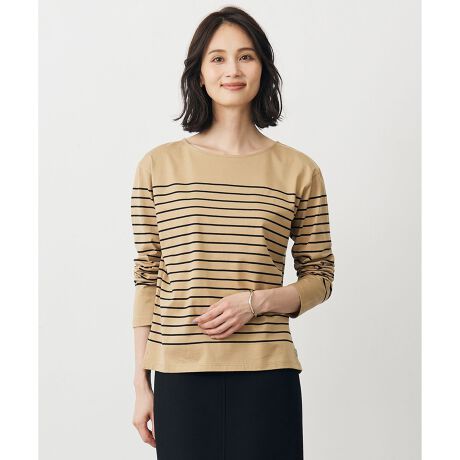 ■デザイン裾につけた小さいワッペンがアクセントのカットソー。単純なボーダー柄でなく、ヨーク部分と裾に無地を配し、ボーダーの太さやピッチにもこだわったJ.PRESSオリジナルのデザインです。サイドはスリットを入れ、動きやすく軽やかな印象に。丈感やシルエットは、どんなボトムスとも合わせやすく着回し力の高い1着です。カラーは、落ち着きのあるグレージュベース(#103)、上品で肌なじみのいいキャメルベース(#134)、メリハリのあるアクセントが効いたダークパープルベース(#180)の3色で展開します。