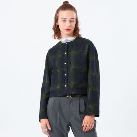 25年秋冬は、定番のグレンチェック柄×チャコールグレー(08)、彩度高めのグリーンチェック×ネイビー(29)、ニュアンスベージュのタータンチェック×エクリュベージュ(40)の3種類のリバーシブル展開。