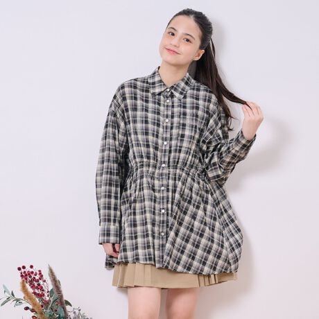 フロントペプラムチェックシャツ