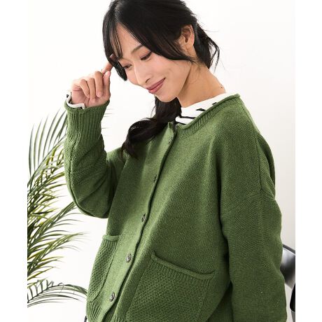 着ていて心地よい綿タッチ素材を使用した前開きカーディガン。