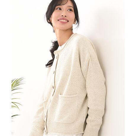 着ていて心地よい綿タッチ素材を使用した前開きカーディガン。