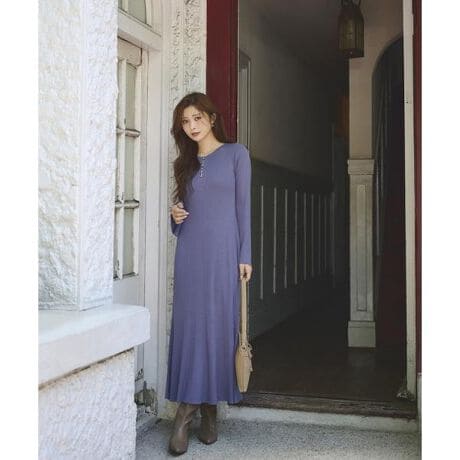 フロントにアイレットをあしらったニットワンピースです。袖口はスリット入りで手元に抜け感をプラス。女性らしいシルエットのニットワンピースは、前後2wayで着られるのも嬉しいポイントです。