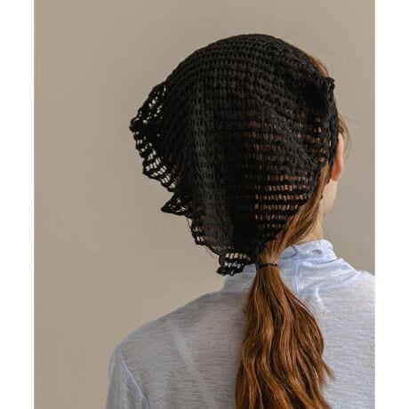 ざっくりと編み上げたメッシュ素材をヘッドスカーフに仕上げました。