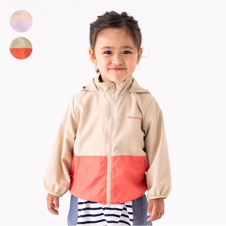 撥水加工のポリエステルタフタ素材のライトアウター、ジャケット。メッシュの裏地付き。衿にフードが収納出来るので、フード禁止の通園、通学にもオススメ。優しいカラーのバイカラーデザインでどんなアイテムとも合わせやすい!【アイテム】無地 シンプル ガーリー カジュアル お洒落 オシャレ かわいい 大人可愛い 普段着 デイリーウェア お出かけ着 ロングスリーブ 長袖 アウター ブルゾン ジャンパー コート ジップアップ フロントジップ 子ども こども 女児 女の子 ガールズ キッズ ベビーサイズ トドラーサイズ 幼稚園 保育園 小学校 通園 通学 小学生 2025年秋冬物新作 丸高衣料 ピンク ラベンダー 薄紫色 ライトベージュ ナイロンジャンパー ナイロンジャケット ウインドブレーカー ムージョンジョン はっ水加工