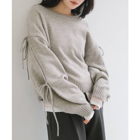 袖スリット リボン 長袖 ニット トップス