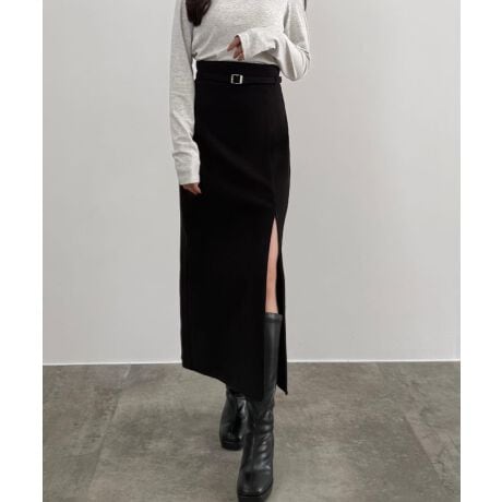 CENEA スリットジップIラインスカート(伸縮あり、あったか生地、裏地なし)