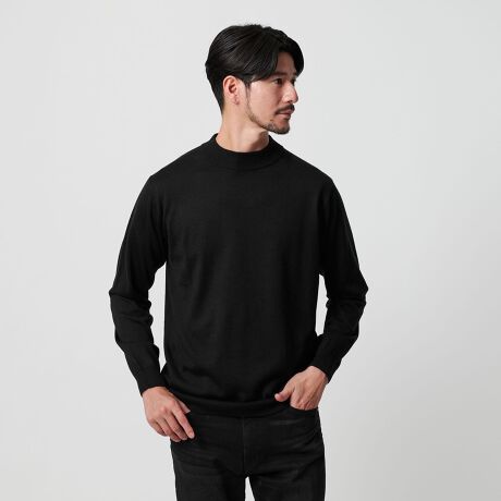 タートルネックほど高くないので、クルーネック感覚で着ていただけます。