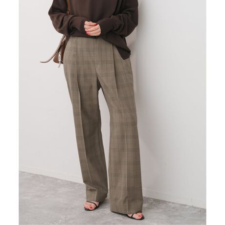 ドライな質感と上品チェックで、品よくこなれるタックパンツ。