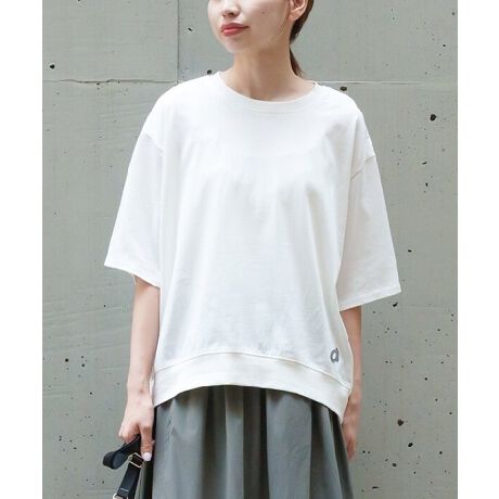 裾はリブ仕様で窮屈さをなくしつつ、ポイントマークでウエスト位置を上げ、スタイルアップ効果を狙ったデザイン。