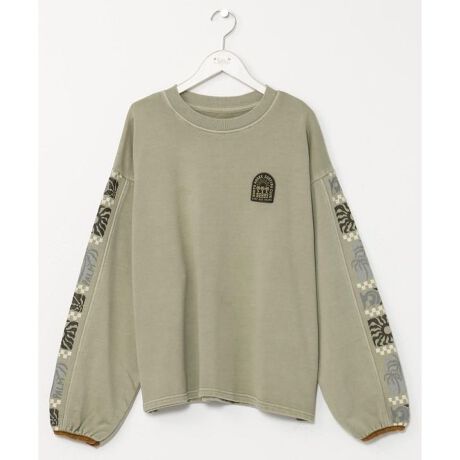 [型番:47U-5313-2025]洗濯を繰り返すことで風合いが増すヴィンテージ加工のトップス。袖にハワイモチーフをプリントしたサーフカジュアルなデザイン。袖口にギャザーが寄せられていて女性らしいシルエットです。