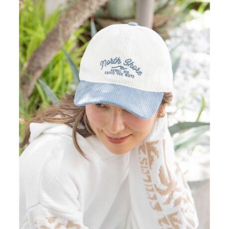 しっかりとしたつばと、深めのかぶり心地が特徴のキャップ。2色の配色とコーデュロイ素材が、シンプルながらも存在感があり、コーディネートのアクセントに。ノースシェアと波デザインの刺しゅうがハワイを感じさせてくれます。綿100%で、サイズ調節も可能なので、快適にお使いいただけます。