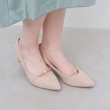 プレーンなパンプスにさりげないゴールドモチーフがキラッと光り、大人な雰囲気の上品パンプス♪