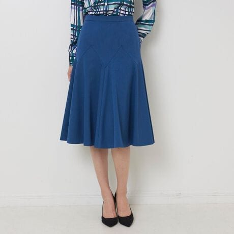 女性らしさ惹き立つ華やかな印象のフレアスカート。緩やかなフィット感の腰回りから裾に向かって大きく広がる複雑なカッティングがレッグラインを美しく魅せます。短すぎず長すぎない丈感が上品に魅せ、動くたびにひらりと揺れるシルエットがフェミニンさを強調。デザインを活かしたトップスインスタイルは、脚長効果も期待でき、洗練されたコーディネートに仕上げてくれます。
