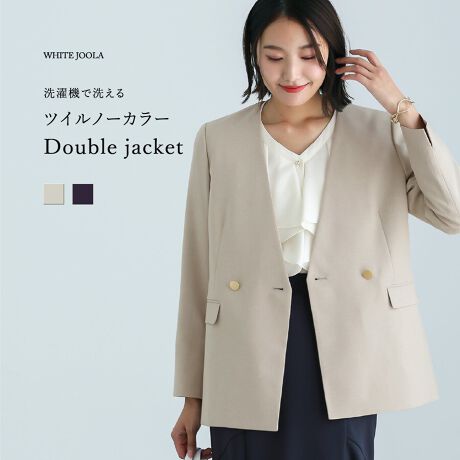 【 洗える 】 ツイルノーカラーダブルジャケット