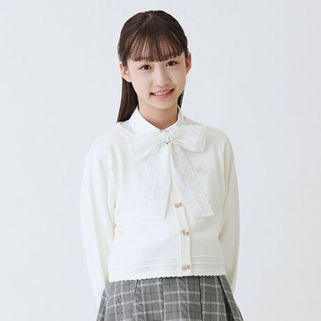 繊細なオリジナルレースをほどこした上品なリボンタイが、顔周りを華やかに演出します。