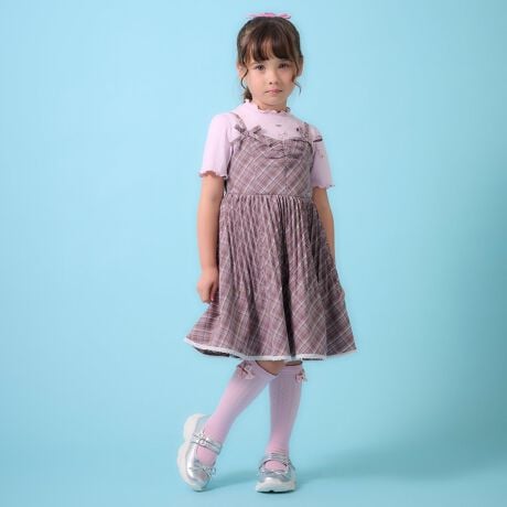 アコーディオンプリーツがフレアー状に広がる、女の子らしいシルエット。