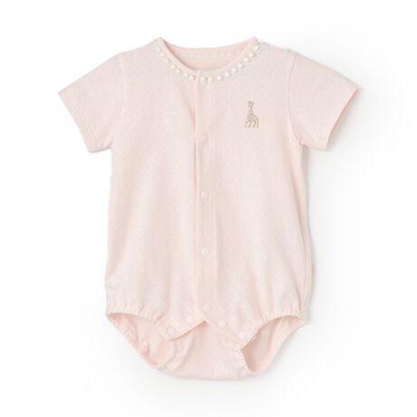 細かい透かし柄が入った半袖ボディスーツです。