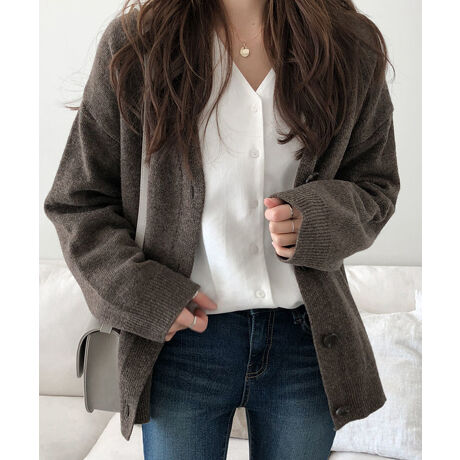オーバーサイズニットカーディガン ゆったり 体型カバー あたっか 韓国ファッション 秋冬