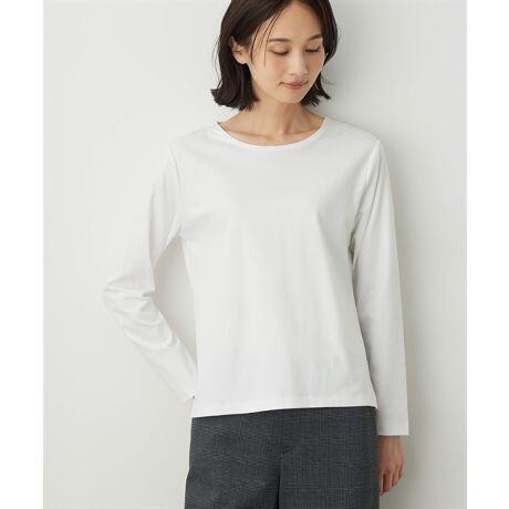 [型番:351666]滑らかな風合いの生地が着心地抜群の長袖トップス丸みのあるクルーネックのデザインが魅力的な長袖トップス。サイドの裾には小さなスリットを施し、動きやすい着心地を演出します。どんな着こなしにも取り入れやすいベーシックなカラーがポイント。シャツやカットソーとレイヤードしたコーディネートがおすすめです。