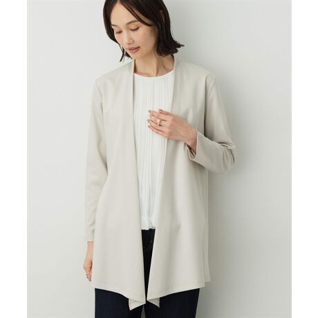 ボタンレスのため、さっと羽織れる気軽さが魅力的です。