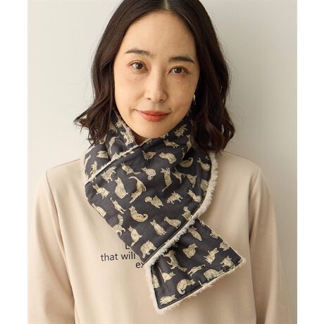 [型番:496169]ネコの総柄プリントが可愛らしいネックウォーマーもこもこの手触りが嬉しいリバティネックウォーマー。穴に通すだけで簡単に身につけられるマフラータイプになっています。リバティ社のネコ柄プリントを使用したキュートなデザインが魅力的。肌寒い季節に大活躍間違いなしのアイテムです。