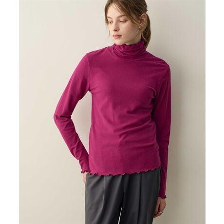 首元までカバーしてくれるハイネックデザインがポイント。