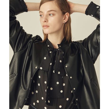 スタイリングのアクセントになるボウタイが施されたブラウス。