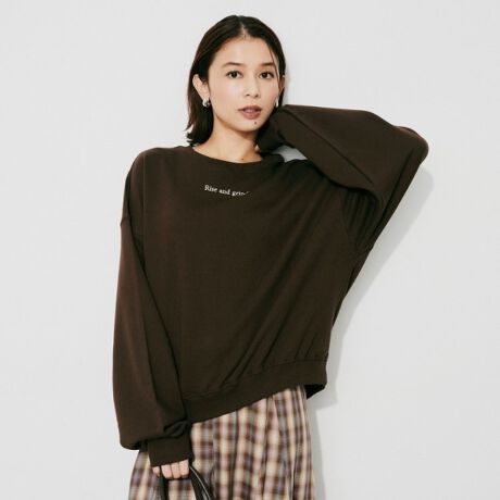 胸元に控えめにあしらわれた Rise and grind. のロゴが、さりげないアクセントとなり、モードな印象をプラスします。