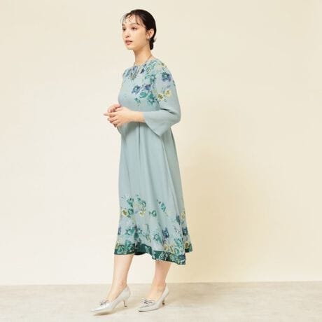 ちりめん状の表面感が特徴のバックサテンジョーゼットを使用しており、なめらかな肌触りと程よい光沢感、美しいドレープ性が特徴です。
